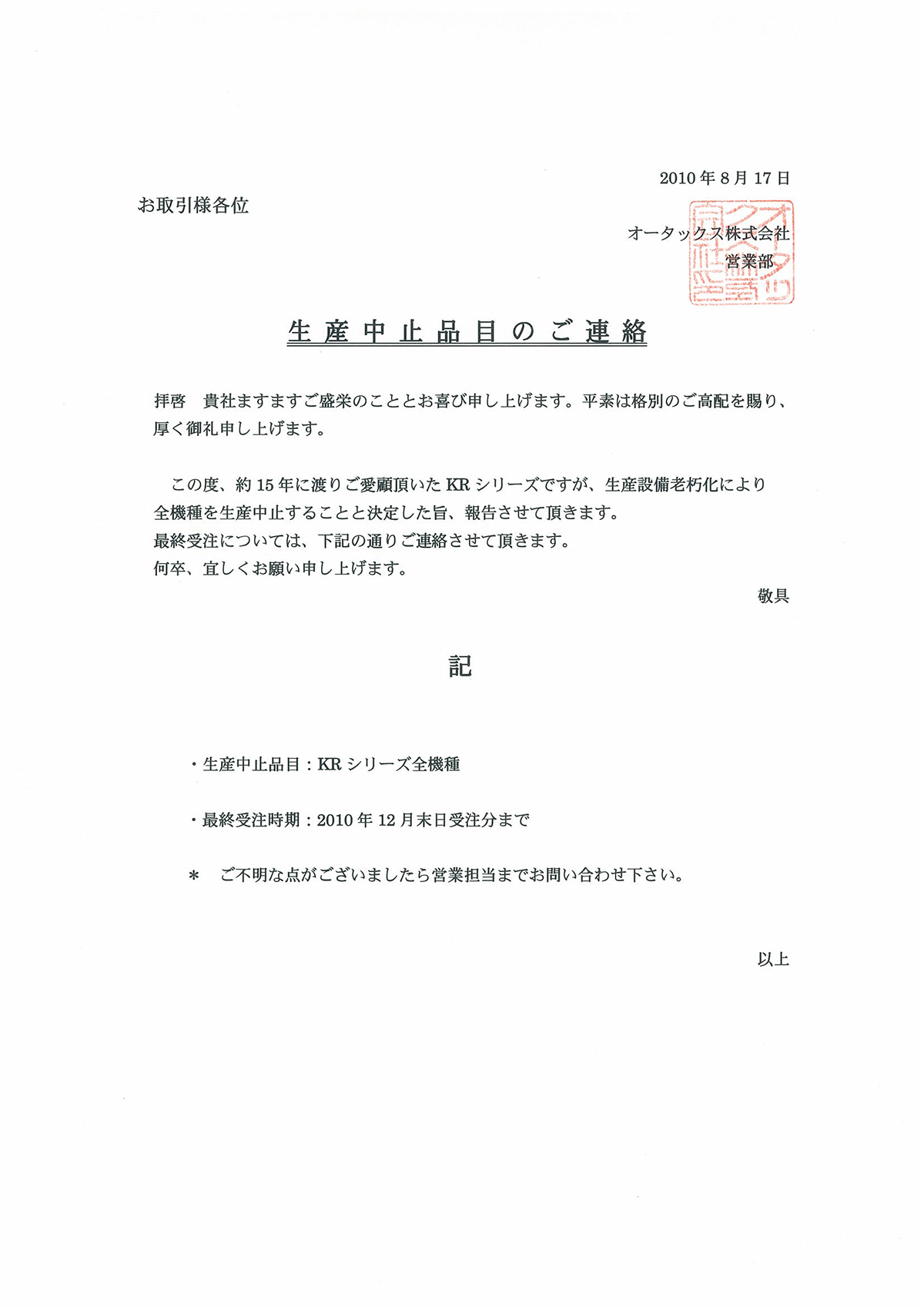 生産中止品 (2010年8月)KRシリーズ<2011年1月生産中止> 2010.08.17 Post シェア (2010年4月)G・GEシリーズ<2010年10月... (2010年9月)Mシリーズ<2011年4月生産中止...