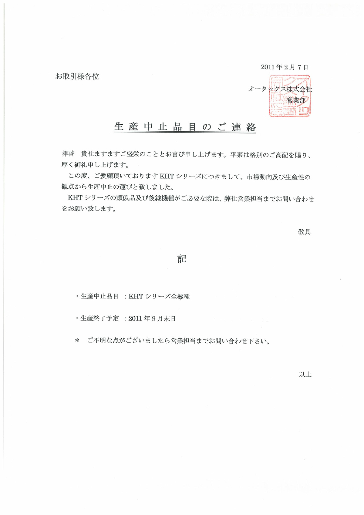 3. (2011年10月)KHTシリーズ<2011年10月生産中止>