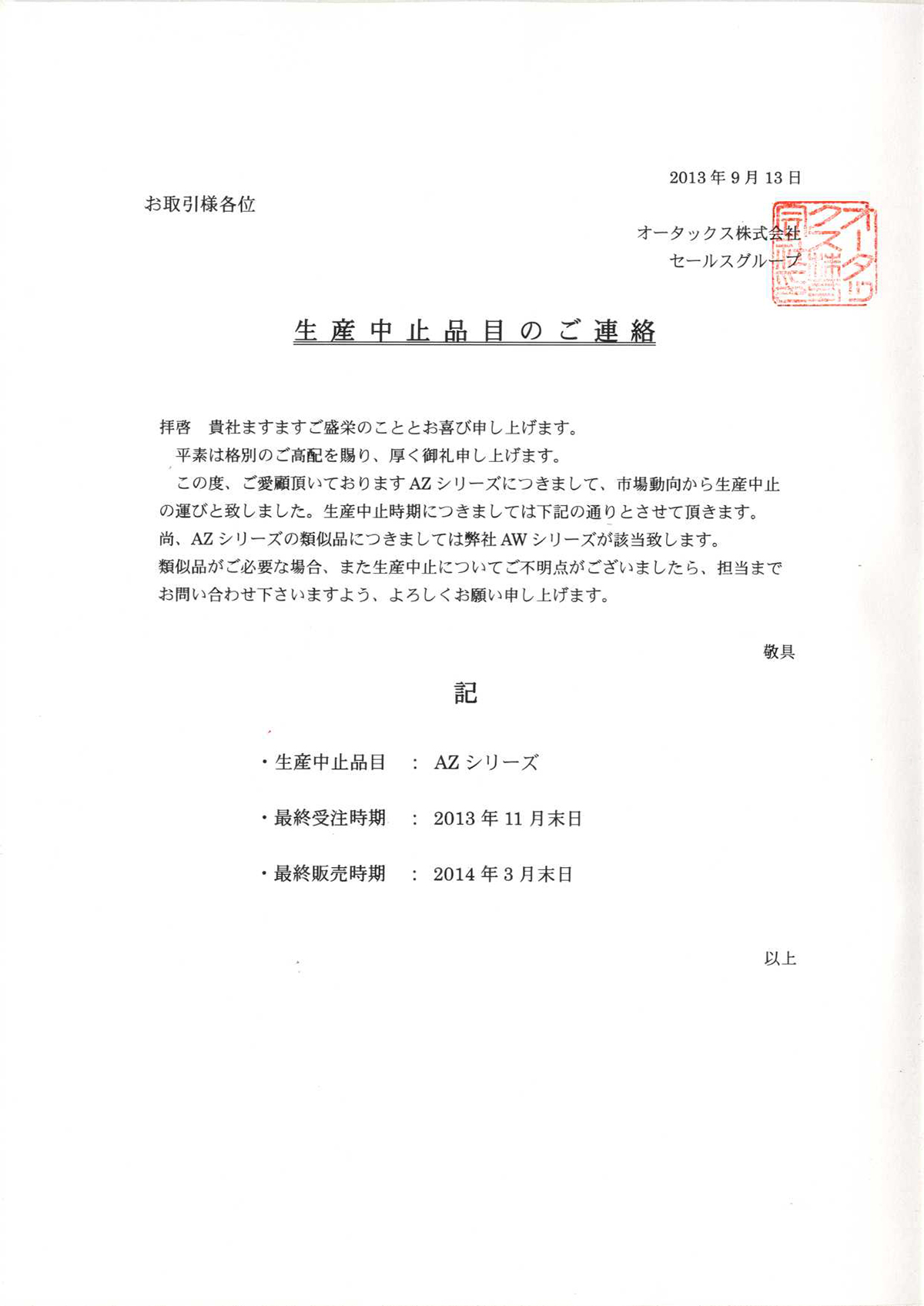 生産中止品 (2013年9月)AZシリーズ<2013年11月生産中止> 2013.09.03 Post シェア (2011年10月)KHTシリーズ<2011年10月... (2016年1月)KUシリーズ1□2<2016年1月...