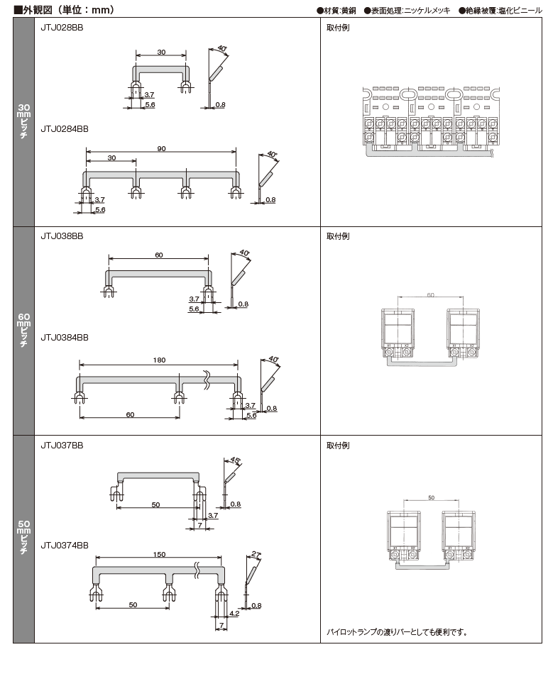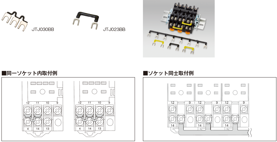 | JTJ038BB | 黒 | 2 | 60mm | AP3837K、AP3848K | SY4S-05B、SM2S-05B | 20A | 10個入 |