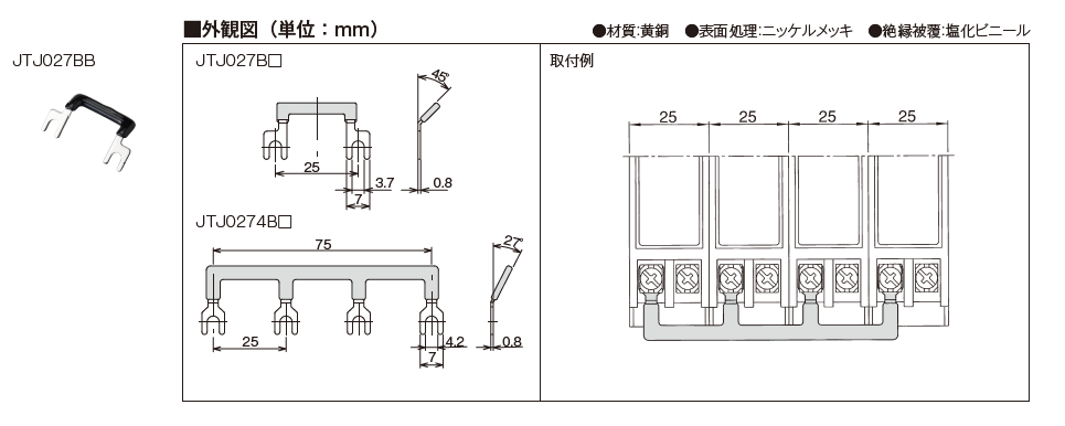 | JTJ0284BB | 黒 | 4 | 30mm | AP3837K、AP3848K | SY4S-05B、SM2S-05B | 20A | 10個入 |