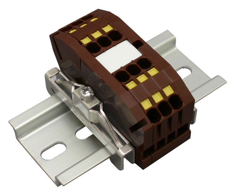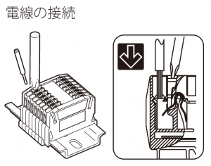 KASUGA端子台 プッシュイン端子台(レール式) プッシュイン端子-レール式端子台 プラスドライバーなどで、ボタンを押しながら電線を挿入。ボタンを離すと結線が完了します。端子台への配線作業の大幅な省力化を実現します。 結線タイプとして、1対1、1対2、2対2、(1対1)x 2 の4種類があります。 (写真はTW25B) (写真はTW26BC、コモンユニット茶色) 共通仕様・材質・海外規格適合定格 下記の表にない仕様については、KASUGA端子台製品検索でお調べください。検索結果のページからデータシートも参照出来ますし、CADファイルへのダウンロードリンクもあります。 シリーズ 品目名 絶縁電圧(V) 定格電流値(A)1 端子ピッチ(mm) 適合電線(最大)㎟ 適合電線(AWG) 結線 TW TW10B 600 10 3.5 1.25 AWG28~16 1対1 TW TW15B 600 10 3.5 1.25 AWG28~16 1対2 TW TW16B 600 10 3.5 1.25 AWG28~16 2対2 TW TW20B 600 20 4.6 2.0 AWG22~14 1対1 TW TW25B 600 20 4.6 2.0 AWG22~14 1対2 TW TW26B 600 20 4.6 2.0 AWG22~14 2対2 TW TW26BN 600 20 4.6 2.0 AWG22~14 2対2 TW TW16BC 600 10 3.5 1.25 AWG28~16 2対2(コモンユニット茶色) TW TW16BCB 600 10 3.5 1.25 AWG28~16 2対2(コモンユニット青色) TW TW26BC 600 20 4.6 2.0 AWG22~14 2対2(コモンユニット茶色) TW TW26BCB 600 20 4.6 2.0 AWG22~14 2対2(コモンユニット青色) TW TW15D 600 10 3.5 1.25 AWG28~16 1対2 TW TW16D 600 10 3.5 1.25 AWG28~16 2対2 TW TW25D 600 20 4.6 2.0 AWG22~14 1対2 TW TW25DN 600 20 4.6 2.0 AWG22~14 1対2 TW TW26D 600 20 4.6 2.0 AWG22~14 2対2 TTW TTW20D 600 20 4.6 2.0 AWG22~14 (1対1)X2