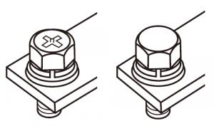 プラスねじも対応した六角ボルトのセルフアップタイプです。ねじサイズがM8またはM10のフレームは、⊕六角ボルトとなります。