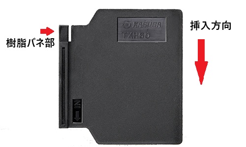 装着方法:端子台の極間部のスリットに、上から絶縁バリアがロゴが正しく見える向きで挿入します。パチンという感じで樹脂バネが内部で開いて固定されます。